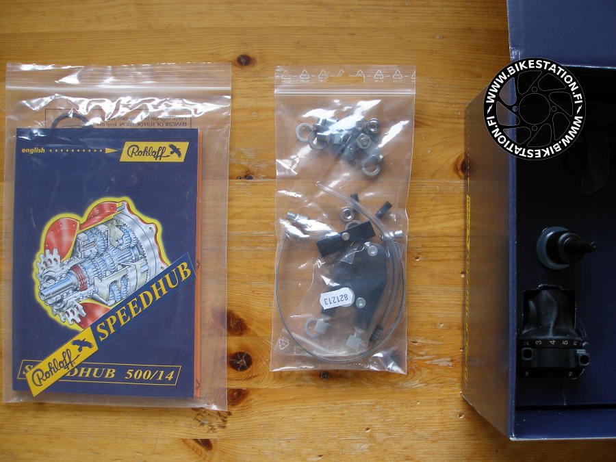 Das Paket enthält eine Kunststofftüte gefüllt mit Montagematerial. Der Inhalt ist abhängig von der ausgewählten Speedhub-Version. Diese Information hat man schon während der Bestellung in der Produktbeschreibung unseres Webshops erfahren.
