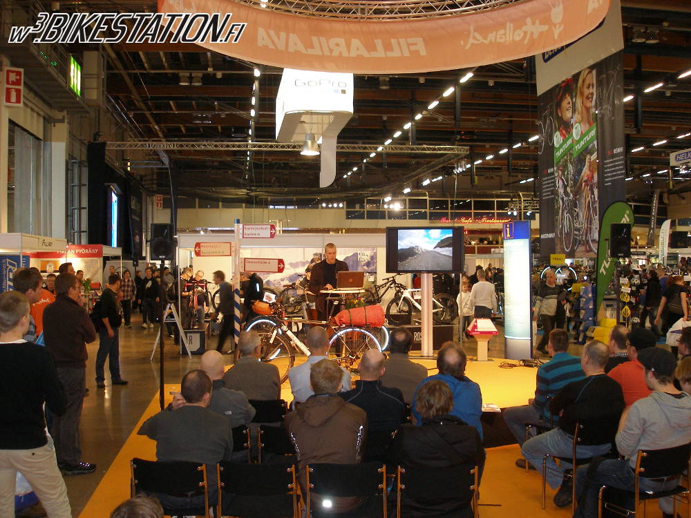 ImageDescriptionPicture created by AWIDON Finland wwwawidonfi for Bike Station Finland wwwbikestationfi Motiv: Heikki Siivari on GoExpo Bike Show 2013 presenting his bicycle through Europe tour 2012 In the picture: visitors monitor stage Tunturi Rose bikes Holland Fillarilava