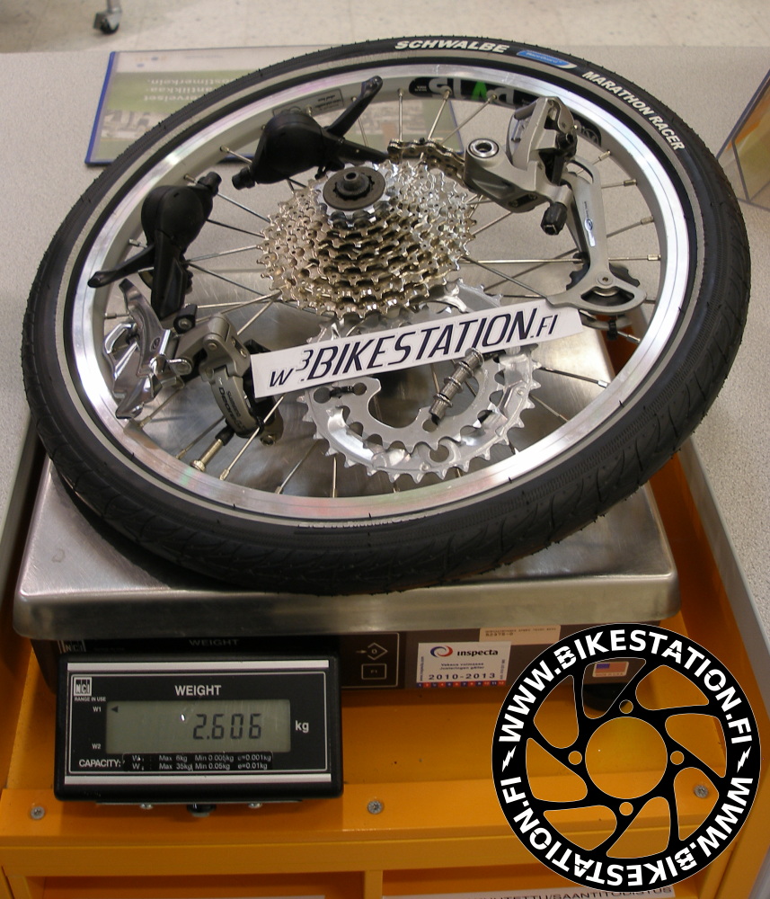 Koska jokaiseen pyörään tulee eri pituiset vaijerit, suora vertailu ei ole mahdollista. Käytämme seuraavia arvoja vaijerien ja kuorien painossa: