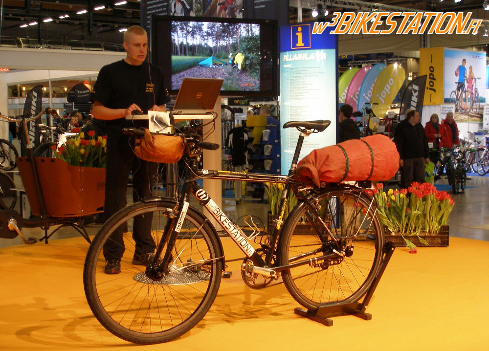 UserCommentASCIIPicture created by AWIDON Finland wwwawidonfi for Bike Station Finland wwwbikestationfi Motiv: Heikki Siivari on GoExpo Bike Show stage 2013 with the trekking bicycle