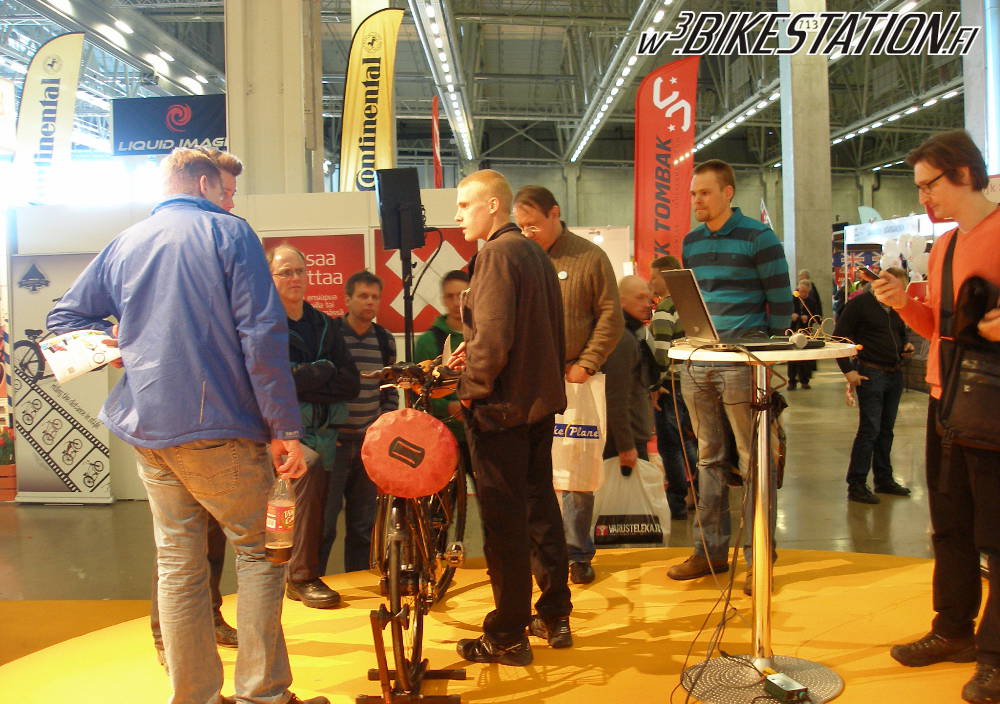 ImageDescriptionPicture created by AWIDON Finland wwwawidonfi for Bike Station Finland wwwbikestationfi Motiv: Heikki Siivari on GoExpo Bike Show 2013 presenting his bicycle through Europe tour 2012 In the picture: Interested visitors in conversation with Heikki after the presentation