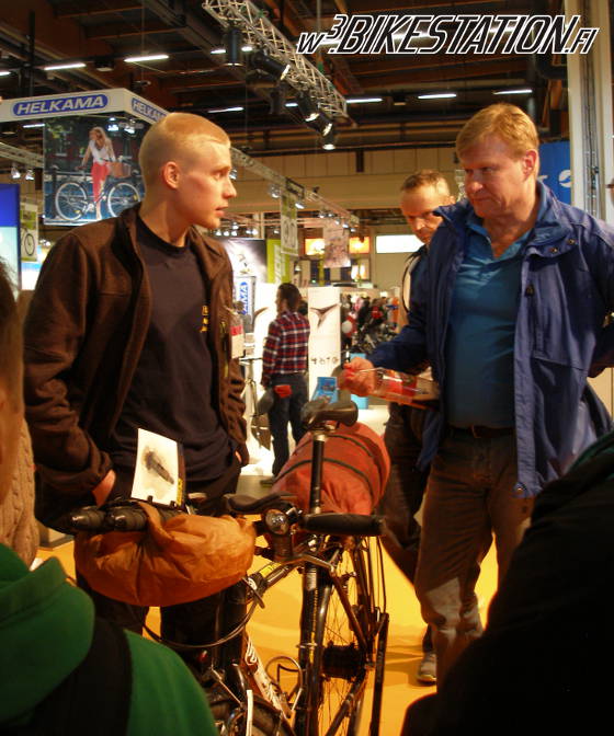Heikki hurmasi yleisönsä luonnollisella tyylillään ja saikin melkoisen joukon tiedonhaluisia messuvieraita peräänsä. Hän tuskin pääsi esiintymislavalta, kun pitkistä matkoista haaveilevat, tulevat polkupyörämatkailijat tulivat tiedustelemaan varusteista, polkupyörästä ja kokemuksista matkan varrelta.