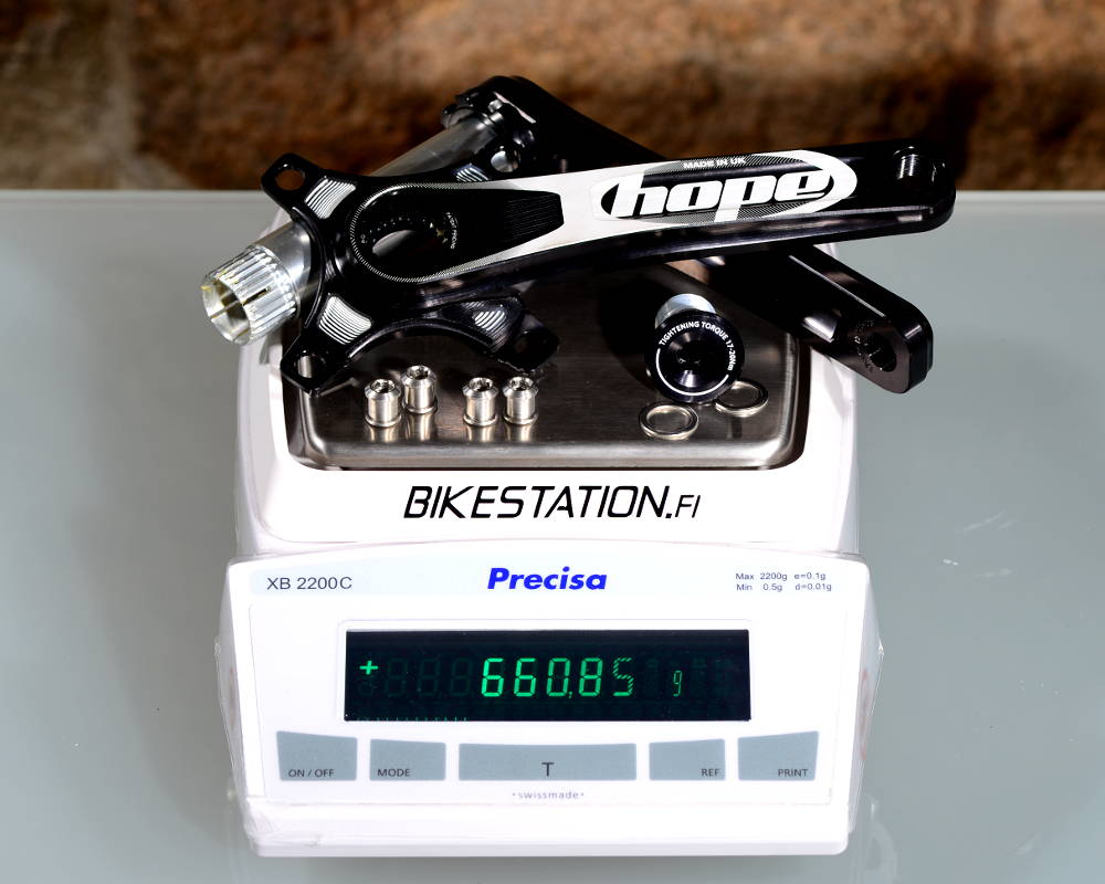- Weight: 673g (175mm arms, axle, screws and shims)