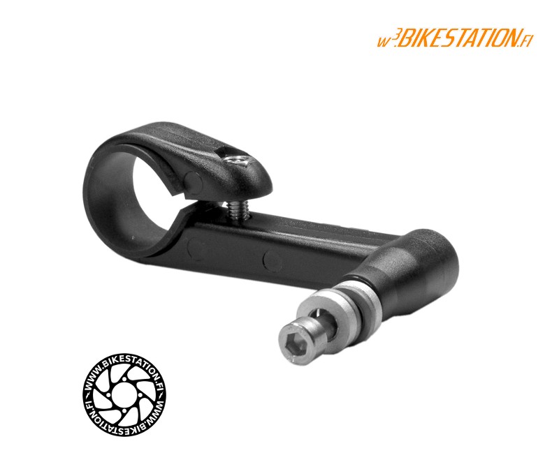 Synteettisestä materiaalista tehty ajovalonpidike ohjaustankoon. Tämä ajovalonpidike sopii ohjaustankoihin, jotka ovat korkeintaan Ø 26 mm halkaisijaltaan. Valmistaja Riese und Müller
